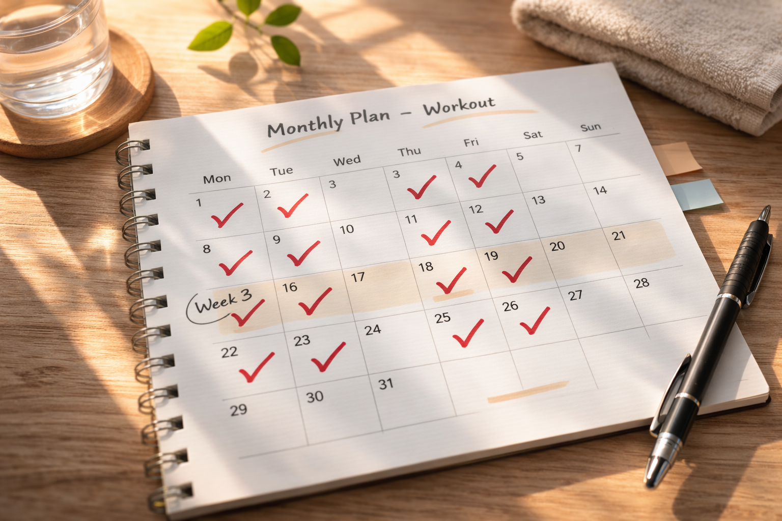 근육량 증가나 체지방 감소처럼 눈에 보이는 구조적인 변화는 보통 6 ~ 8주 이상이 지나야 관찰되는 경우가 많습니다.